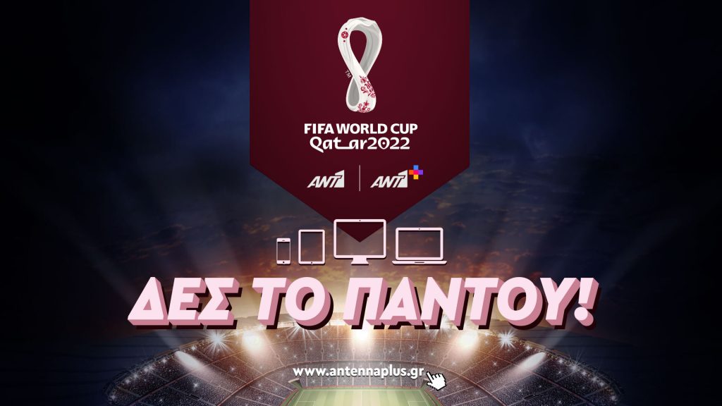 Το σύνολο των αγώνων, από το εναρκτήριο παιχνίδι, στις 20 Νοεμβρίου, έως τον μεγάλο τελικό στις 18 Δεκεμβρίου θα προβληθεί από το ειδικό θεματικό κανάλι FIFA World CupTM του ΑΝΤ1+, 32 αγώνες θα μεταδοθούν από τη συχνότητα του ΑΝΤ1, ενώ και οι 64 αγώνες θα μεταδοθούν από τη streaming πλατφόρμα ΑΝΤ1+. Όλοι οι αγώνες θα είναι διαθέσιμοι on demand μετά τη ζωντανή μετάδοση, για ετεροχρονισμένη θέαση στο ΑΝΤ1+. Η εμπειρία θέασης απογειώνεται καθώς, εκτός από την προβολή όλων των αγώνων σε διαφορετικές συσκευές, ακόμη και ταυτόχρονα, διαμορφώνεται η ενότητα του ANT1+ για το World Cup, που θα περιλαμβάνει πλούσιο υλικό από τη ιστορία της διοργάνωσης, την παρουσίαση των ομάδων, θεματικές εκπομπές και ντοκιμαντέρ, αλλά και live αναμεταδόσεις με highlights και αναλύσεις.