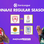 Το μεγάλο φινάλε της regular season της EuroLeague με Ολυμπιακός – Αρμάνι Μιλάνο και Παναθηναϊκός AKTOR – Αναντολού Εφές στο παρκέ του Novasports