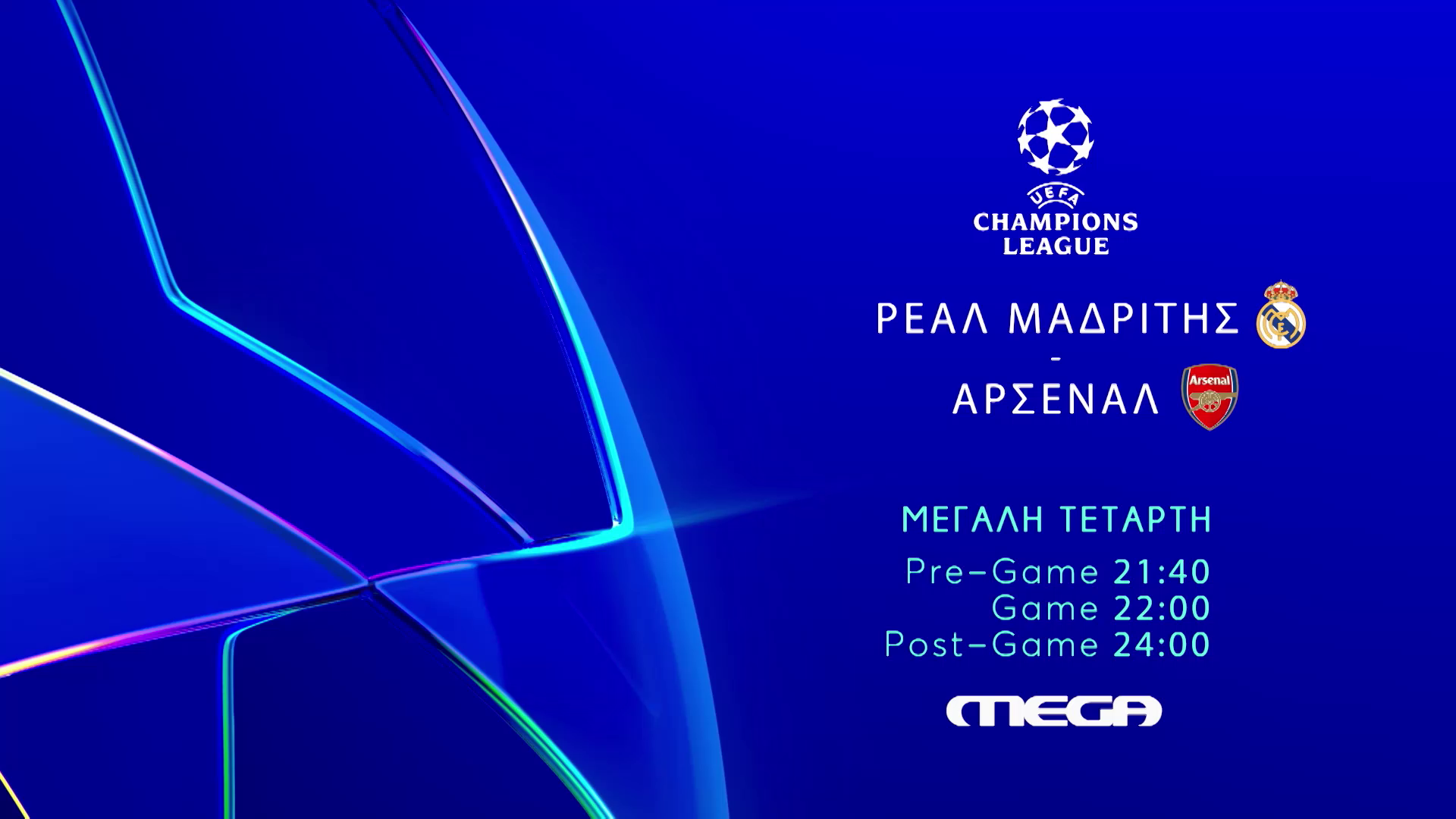 Τη Μ. Τετάρτη 16 Απριλίου, το MEGA φέρνει ζωντανά στις οθόνες μας τη μεγάλη ρεβάνς της Ρεάλ Μαδρίτης με την Άρσεναλ, στις 22:00.