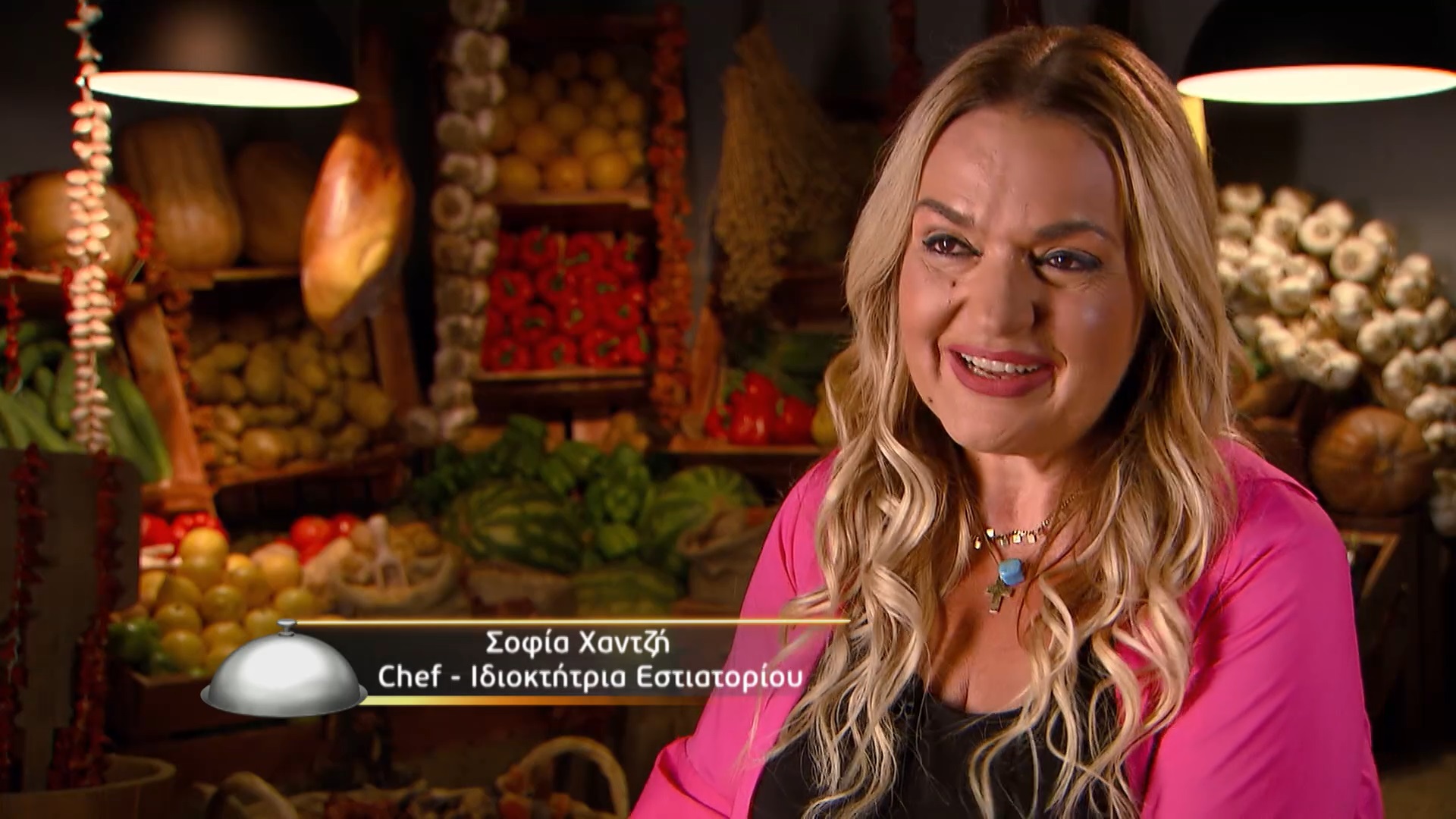 Η Σοφία γεννήθηκε στο Σίδνεϋ και μεγάλωσε στην Πάτρα. Είναι μαγείρισσα. Πριν από ένα χρόνο είχε ένα σοβαρό ατύχημα, έπεσε και χτύπησε πολύ άσχημα τον αυχένα της. Σήμερα νιώθει πολύ χαρούμενη που είναι και πάλι όρθια, έτοιμη να κάνει τα όνειρά της πραγματικότητα. Στο «Game Of Chefs» έρχεται μαζί με δύο φίλες της και ένα «μάτι» για να μην την ματιάζουν. Στην κουζίνα μπαίνει με ένα φασκόμηλο στο χέρι, που το έχει κάψει, θυμιατίζει και εύχεται καλή επιτυχία στους συμπαίκτες της. Το φασκόμηλο, λέει, είναι για να φύγει η αρνητική ενέργεια. Αν και αντιμετωπίζει αρκετές απρόοπτα που την καθυστερούν, στο τέλος καταφέρνει να κάνει το πιάτο που θέλει. Στο stress room, περνάει δύσκολα με τα σχόλια που ακούει από τους σεφ. Στην αρένα, η Σοφία γίνεται η αγαπημένη παίκτρια των κριτών και τους εντυπωσιάζει με το ταπεραμέντο της. Οι σεφ μένουν άφωνοι όταν μαθαίνουν ότι είχε μείνει παράλυτη οκτώ μήνες μετά το ατύχημά της.