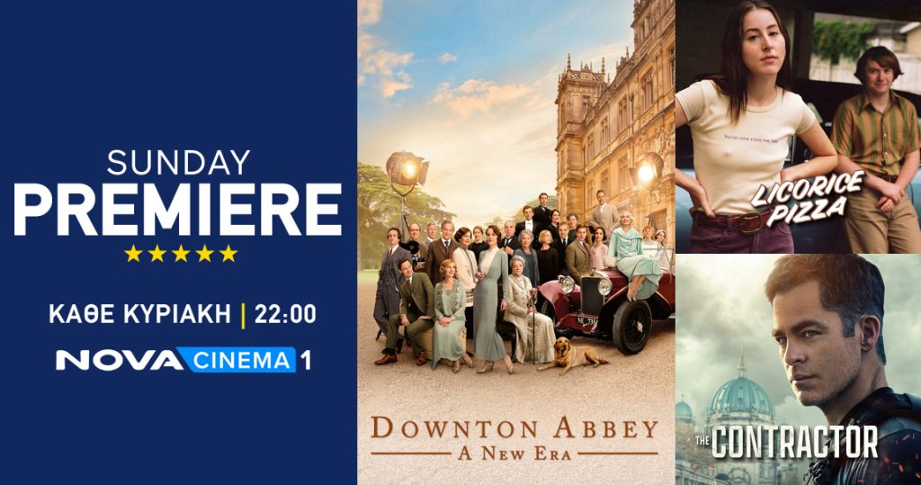 Οι πιο δυνατές πρεμιέρες κάθε Κυριακή στις 22.00 στο Novacinema1. Υπερπαραγωγές από τα μεγαλύτερα στούντιο του Χόλιγουντ, οι τελευταίες επιτυχίες του Box office και εντυπωσιακές πρεμιέρες που κάνουν τη διαφορά! Μεταξύ αυτών «The Northman», «Jurassic World: Dominion», «Spencer», «Licorice Pizza», «The Contractor», «House of Gucci», «Downtown Abbey: A New Era».